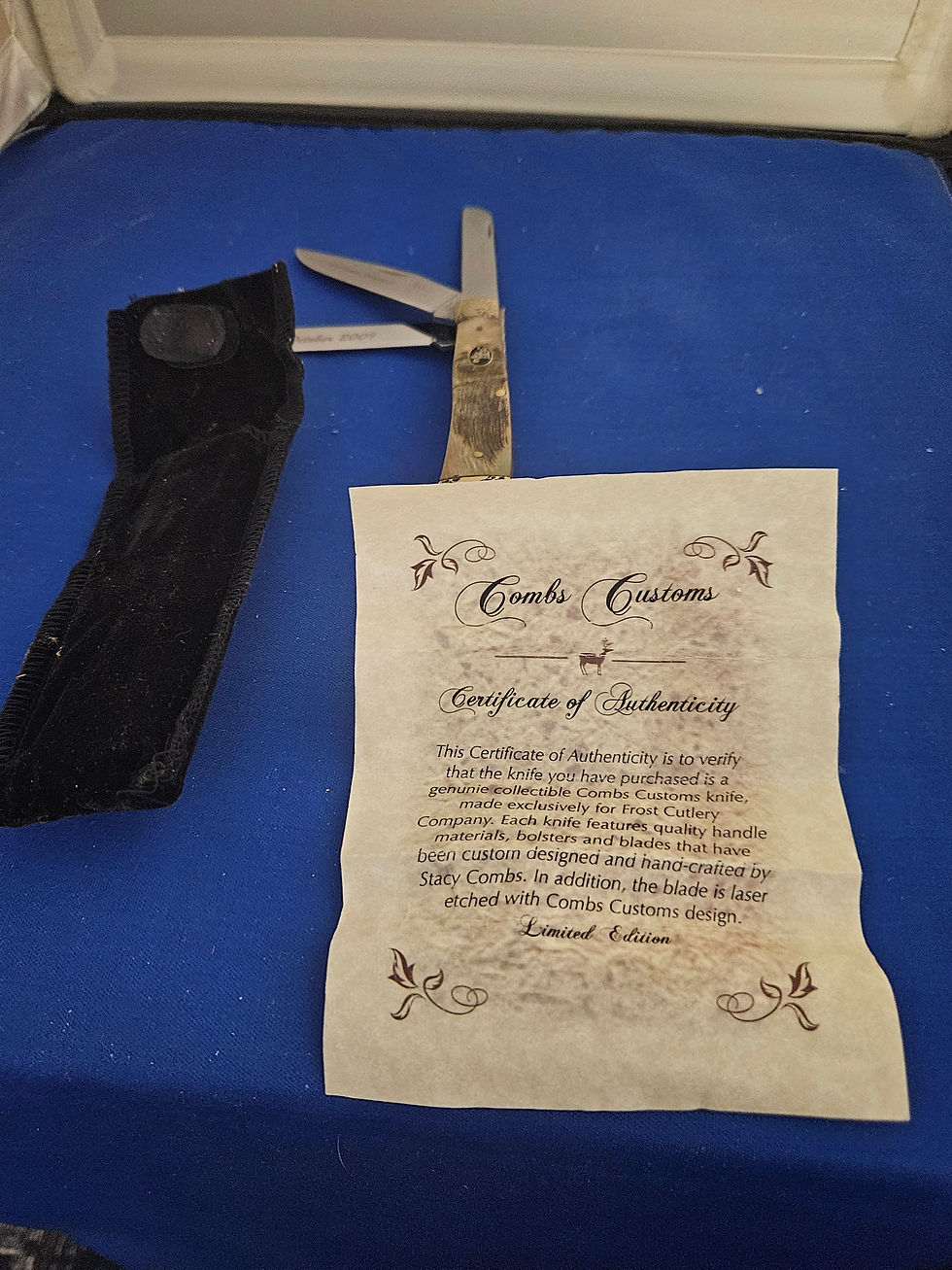 We have more knives to list. Our father had secretly collected knives for more than 30 years. After his passing, we began finding toolboxes filled with knives. Be sure to check our site regularly for new additions to our online store. At this time, less than half of the collection has been listed on the site